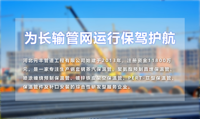 河北元豐管道工程有限公司始建于2013年,注冊(cè)資金11800萬元。是一家專注生產(chǎn)鋼套鋼蒸汽保溫管、聚氨酯預(yù)制直埋保溫管、噴涂纏繞預(yù)制保溫管、鍍鋅鐵皮架空保溫管、PERT-Ⅱ型保溫管、保溫管件及補(bǔ)口安裝的綜合性研發(fā)型服務(wù)企業(yè)。